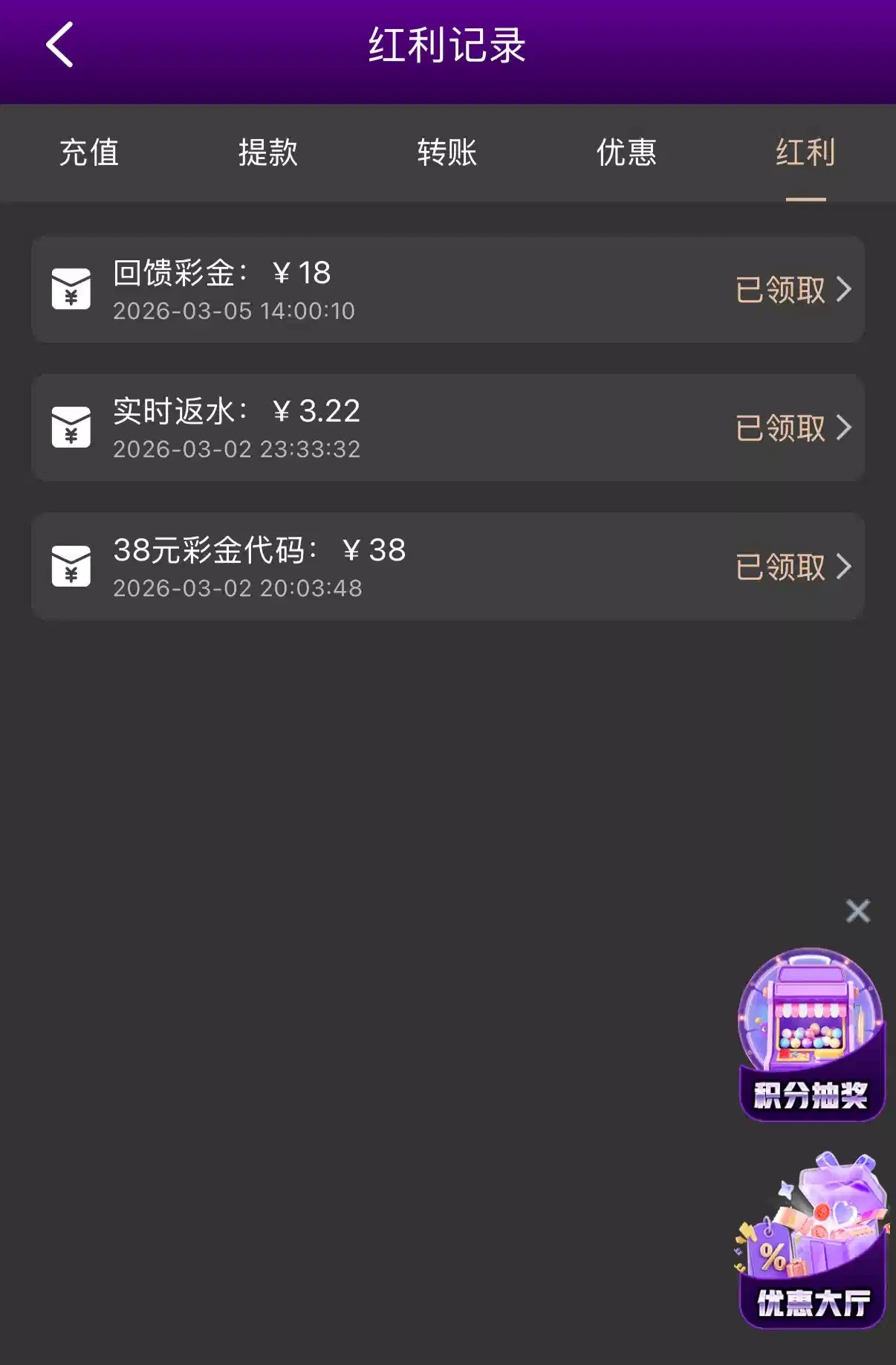 有账号的哥们可以上号看一下红利记录有没有的领取,要近期充值过才有具体上号查看