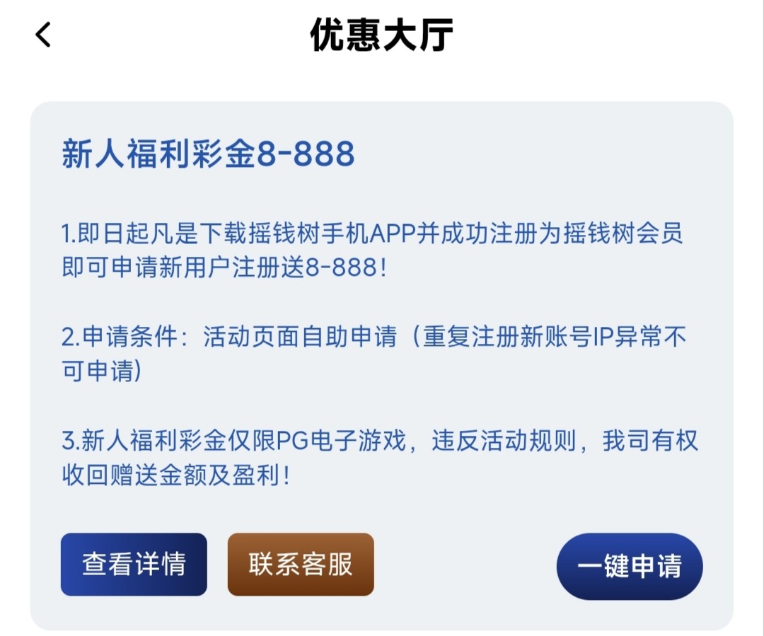 之前有发过一次还没有玩过可以注册好到优惠大厅里申请一下彩金,仅限娱乐PG电子